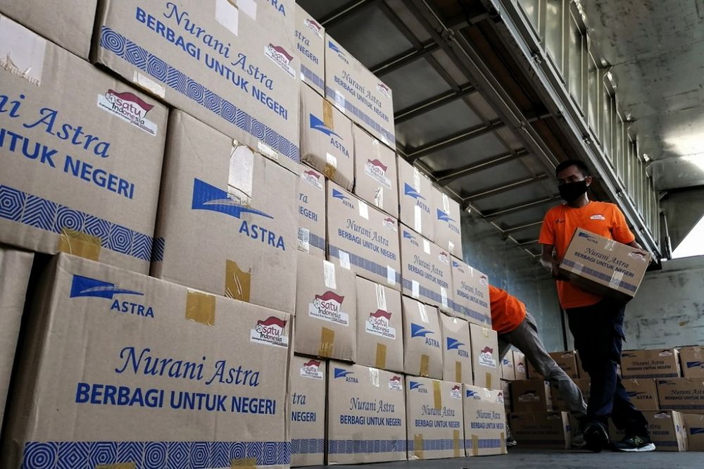 Jakarta, SURABAYAPAGI.com - Astra melalui Nurani Astra menyalurkan bantuan tahap keempat berupa 127.232 paket bahan pokok sehari-sehari senilai Rp25 miliar untuk meringankan dampak sosial akibat pandemi COVID-19 setelah sebelumnya secara bertahap menyerahkan bantuan tahap awal, kedua, dan ketiga senilai Rp106 miliar untuk mencegah penyebaran pandemi.