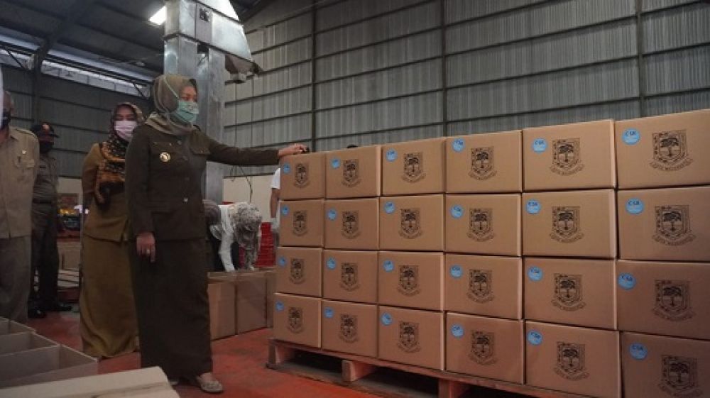 SURABAYAPAGI.COM, Mojokerto - Penyaluran bantuan bagi warga terdampak Covid-19 di wilayah Kota Mojokerto, terus diberikan oleh pemerintah daerah sampai menjelang Idul Fitri. Berbagai jenis bantuan dari pemerintah pusat, provinsi dan daerah terus disalurkan. Dan kali ini, Wali Kota Mojokerto Ika Puspitasari meninjau secara langsung proses pengemasan sembako bagi warga terdampak di Perusahaan Umum Badan Urusan Logistik (Perum Bulog) Subdivre II Surabaya Selatan, Senin (18/5/2020).