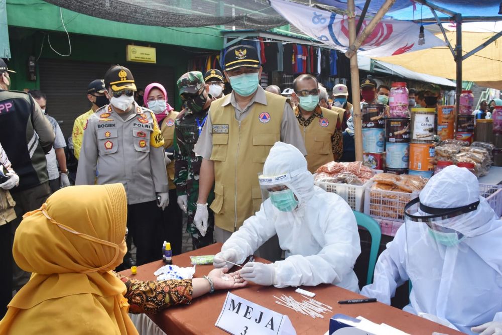 Sementara itu, pelaksanaan rapid test di area Pasar Kedungmaling, Kecamatan Sooko, Kabupaten Mojokerto, tim Dinkes Kabupaten Mojokerto melakukan rapid test terhadap 373 peserta yang hasilnya non reaktif semua.