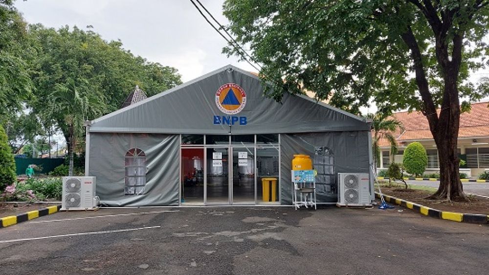 Beberapa tenda besar bertuliskan BNPB (Badan Nasional Penanggungan Bencana) berwarna orange dan abu-abu, terbangun kokoh. Didalamnya, sudah terpasang beberapa pendingin dan ranjang perawatan, pun sudah tertata. Spanduk besar bertuliskan “Rumah Sakit Lapangan Covid-19, Pemerintah Provinsi Jawa Timur” pun terbentang dipagar pintu RS Kelamin.