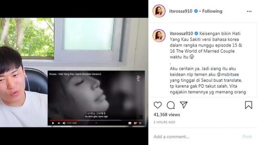 Rossa juga mengunggah video saat ia menyanyikan lagu "Hati Yang Kau Sakiti". Seorang pria dalam bahasa Indonesia terbata-bata memuji lagu tersebut.