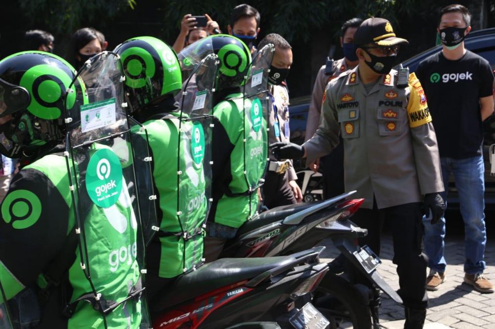 SURABAYAPAGI.COM, Surabaya - Gojek sebagai super-app di Indonesia, terus berinovasi di masa pandemi serta memperkuat standar pelayanannya dengan menerapkan protokol kesehatan. Pada layanan GoRide dan GoCar dilakukan uji coba penggunaan sekat pelindung yang berfungsi meminimalisir penyebaran virus melalui droplet.