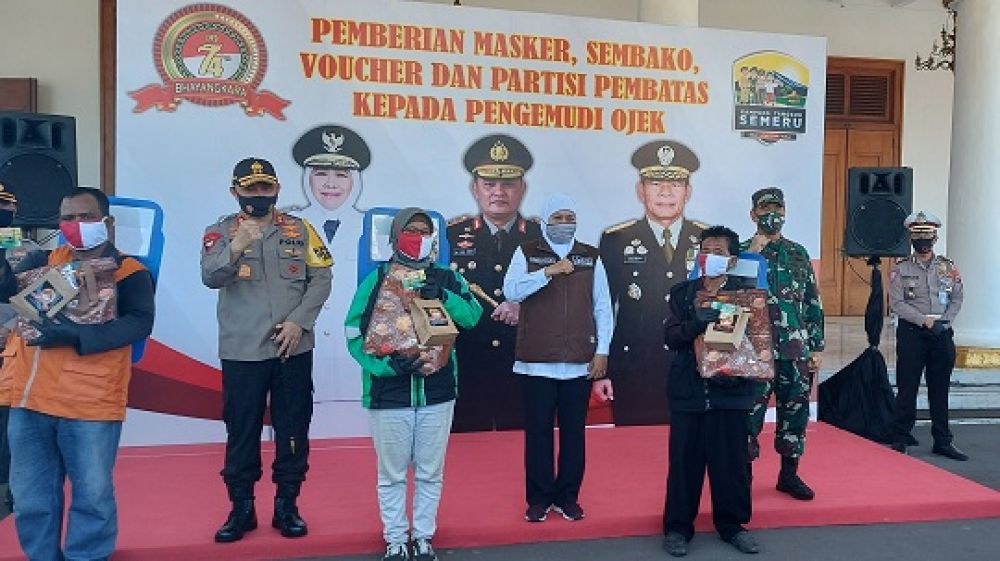 Gubernur Jawa Timur Khofifah Indar Parawansa, Kapolda Jatim Irjen Pol Mohammad Fadil Imran dan Pangdam V Brawijaya Mayjend TNI Widodo Iryansyah menyerahkan langsung partisi pembatas tersebut. Selain partisi pembatas, bantuan lainnya yang diberikan kepada ojek online dan ojek pangkalan yaitu berupa masker, sembako, dan voucher.