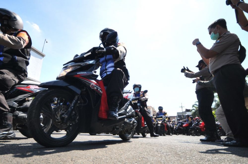 Alumni Akademi Kepolisian angkatan 1991 Bhara Daksa menggelar bakti sosial (baksos) kepada Babinkamtibmas, masyarakat, purnawirawan Polri, Warakawuri Polri, komponen personil polri yang gugur karena Covid-19 di Mapolrestabes Surabaya, Jawa Timur, Senin (27/7/2020). Pelaksanaan kegiatan penyerahan bantuan sosial ini merupakan bentuk empati atau kepekaan dari para alumni Akpol 91 Batalyon Bhara Daksa kepada masyarakat yang terdampak pandemi virus Corona (Covid-19). SP/Julian