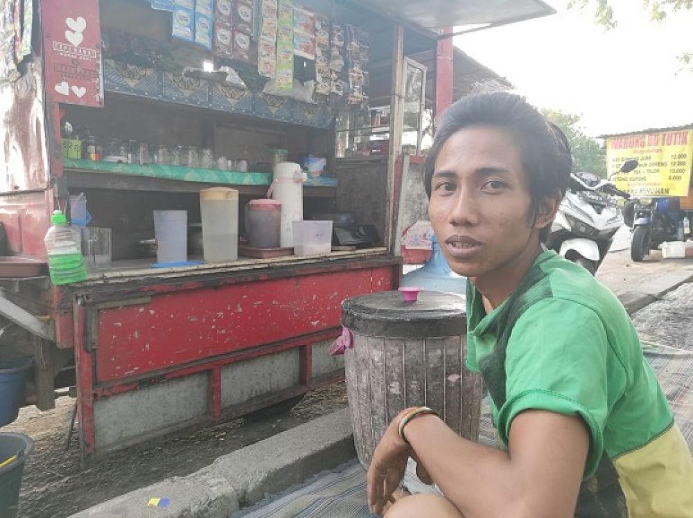Pendapatan warung selama pandemi Covid-19 menurun drastis. Sebelum pandemi penghasilan saya sekitar 600 ribu, sehari, sekarang dapat 200 ribu saja Alhamdulillah mas. Apalagi ada jam malam tambah bunyek!.