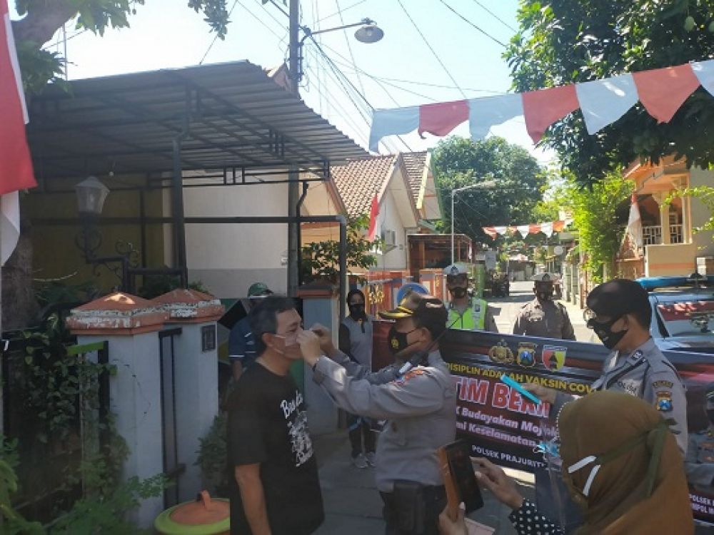 SURABAYAPAGI.COM, Mojokerto – Menuju kebiasan baru Polsek Prajuritkulon melakukan blusukan kampanye 'Jatim Bermasker' di lingkungan Pekayon Baru Rt 004 Rw 001, Kelurahan Kranggan, Kota Mojokerto, Sabtu (22/08/2020) siang.