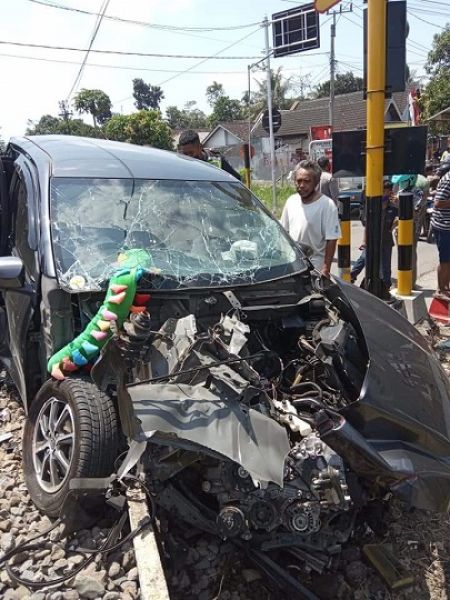 SURABAYAPAGI.COM, Blitar - Warga lingkungan Ngegong Kel Gedog Kec Sananwetan Kota Blitar dikejutkan suara dentuman keras di perlintasan Rel KA Ngegong, ternyata suara benturan keras itu berasal dari Rangkaian Kereta Api Matarmaja jurusan Malang-Blitar -Jakarta yang menghantam mobil penumpang yang ditumpangi satu keluarga.