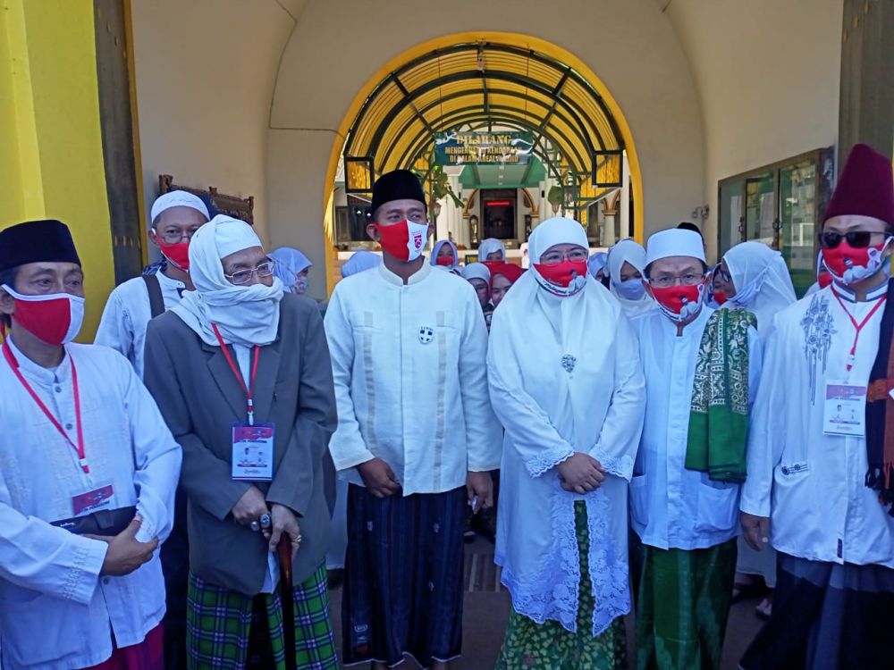 Para relawan dan simpatisan Ahmad Fauzi memadati halaman Masjid Jamik, bermaksud untuk menyatakan dukungan untuk mengantarkan pasangan Fauzi - Eva ke Kantor Komisi Pemilihan Umum (KPU) kab. Sumenep