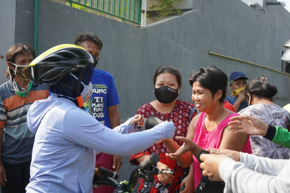 SURABAYAPAGI.com, Mojokerto - Wali Kota Mojokerto, Ika Puspitasari gowes keliling kampung di Kota Mojokerto, Minggu (13/9/2020) pagi. Selain membagi ribuan masker, Petinggi Pemkot ini juga melakukan kampanye dan sosialisasi protokol kesehatan.