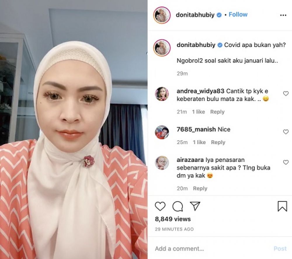 Donita mengungkap cerita itu di Instagram miliknya. Selain demam, Donita juga mengalami batuk, pilek, dan kesulitan bernapas.