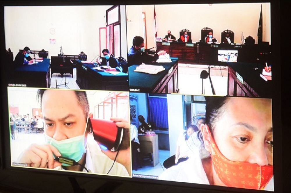 Sidang yang digelar online tersebut dihadiri oleh kedua terdakwa ibu yang bernama kristin dan anak putranya Johan, siap untuk mengikuti persidangan. Majelis Hakim membuka persidangan kasus pengedaran pil double L menanyakan pada terdakwa.