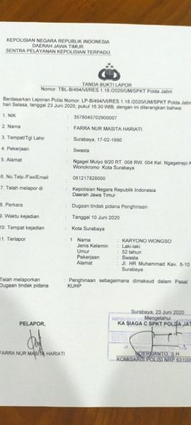 Tony Suryo, selaku Kuasa Hukum korban mengatakan, jika korban sudah membuat laporan pada Juni lalu ke Polda Jatim.