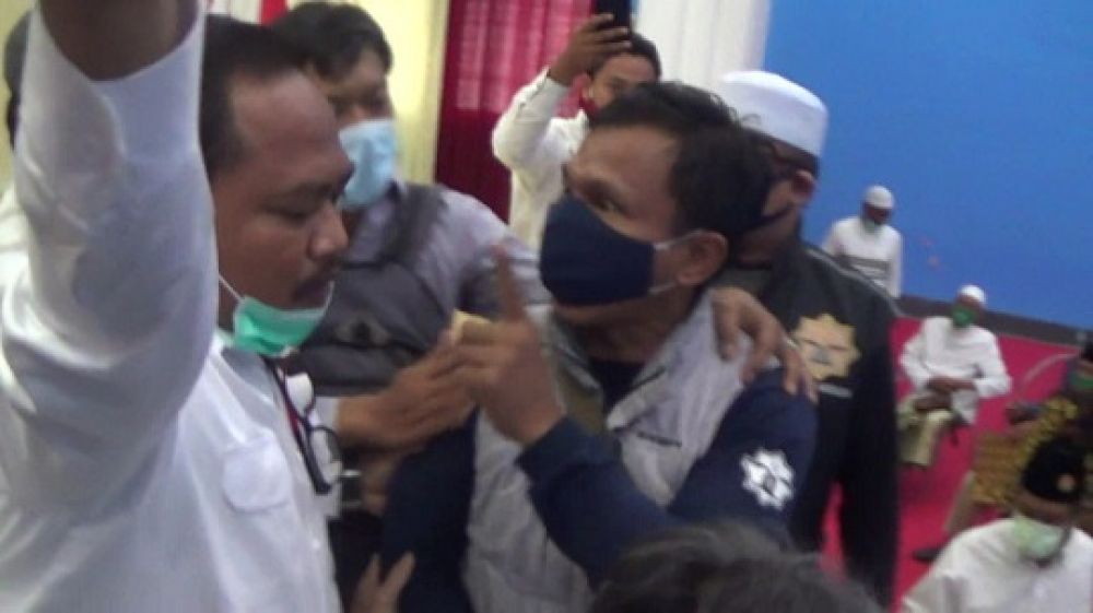 "Awalnya kita ramah tamah di Graha Jabal Nur. Kita menunggu keadaan di Gedung Juang 45. Tapi kemudian yang kita dengar info kawan di lapangan, Gedung Juang 45 dikuasi oleh kelompok tidak dikenal. Dan kawan kita di sana dipersekusi dan diusir. Sehingga tidak memungkinkan di sana (untuk digelar acara)," kata Agus Ma'shum selaku Wakil Ketua Komite Eksekutif KAMI Jatim.