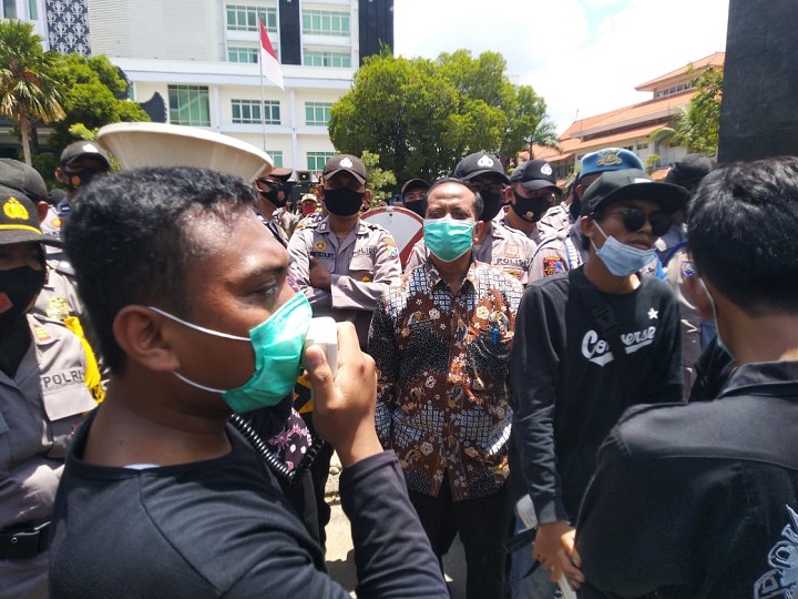 Di depan massa, Hamdani meminta para aktivis mau menyebut poin-poin apa dan pasal mana saja dari UU Cipta Kerja yang dianggap memberatkan sehingga Pemkab Lamongan bisa menyampaikan keberatan UU ini.