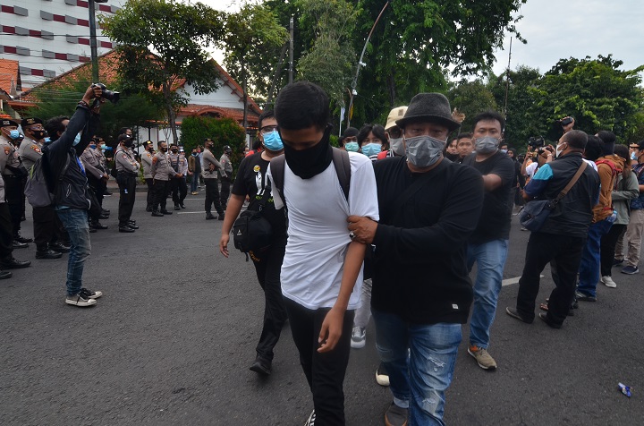 Sementara itu, Kombes Pol Trunoyudo Wisnu Andiko Kabid Humas Polda Jatim mengatakan, aparat kepolisian telah menangkap 169 orang yang terindikasi bukan bagian dari massa aksi. Mereka ditangkap karena diduga membawa molotov, cat pilog, dan miras. Mereka ditangani Polrestabes Surabaya dan Polda Jatim.