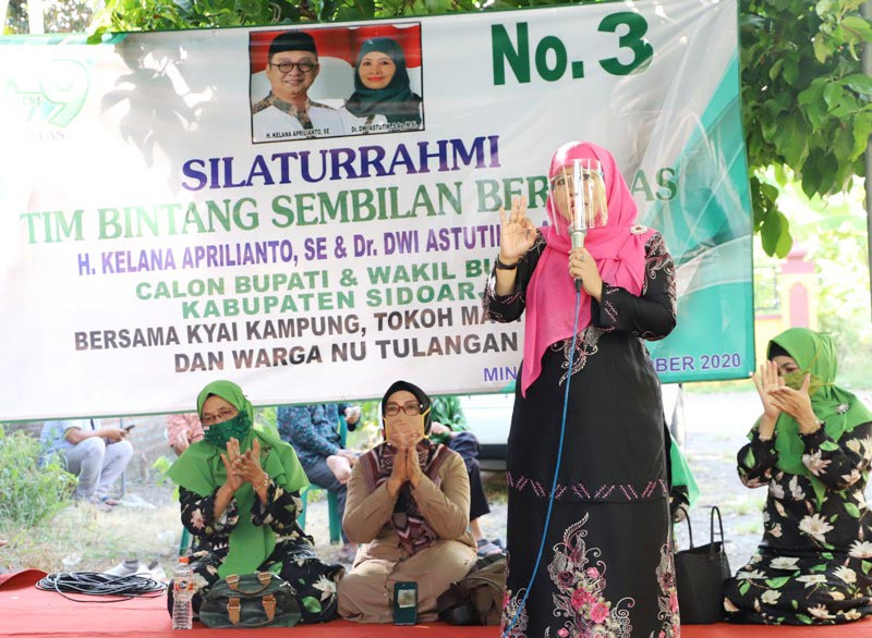 NU wilayah Tulangan menyampaikan dukungannya lewat silaturahim Tim Bintang Sembilan Berkelas Kelana-Astutik bersama kiai kampung, tokoh masyarakat, dan warga NU Tulangan, Minggu (25/10/2020) sore.