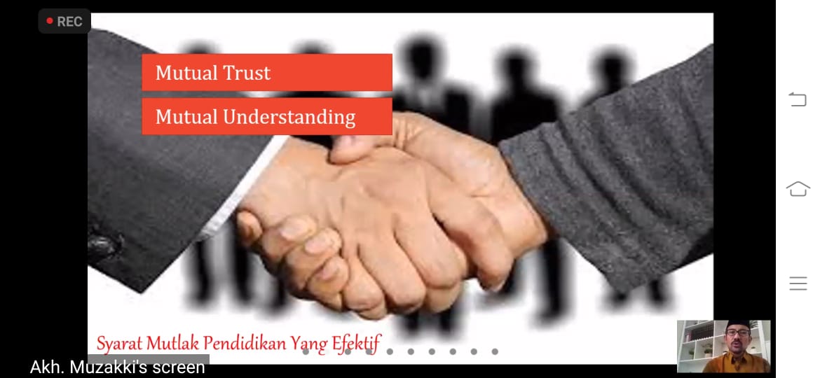 Menurut Prof. Muzakki, mendidik anak itu bukan semata tugas guru namun lebih dari itu juga tugas orangtua. Kesulitas dimasa pandemi, kata dia, harus dijadikan motivasi tersendiri bagi setiap orangtua untuk menuntun anak-anaknya supaya sukses.