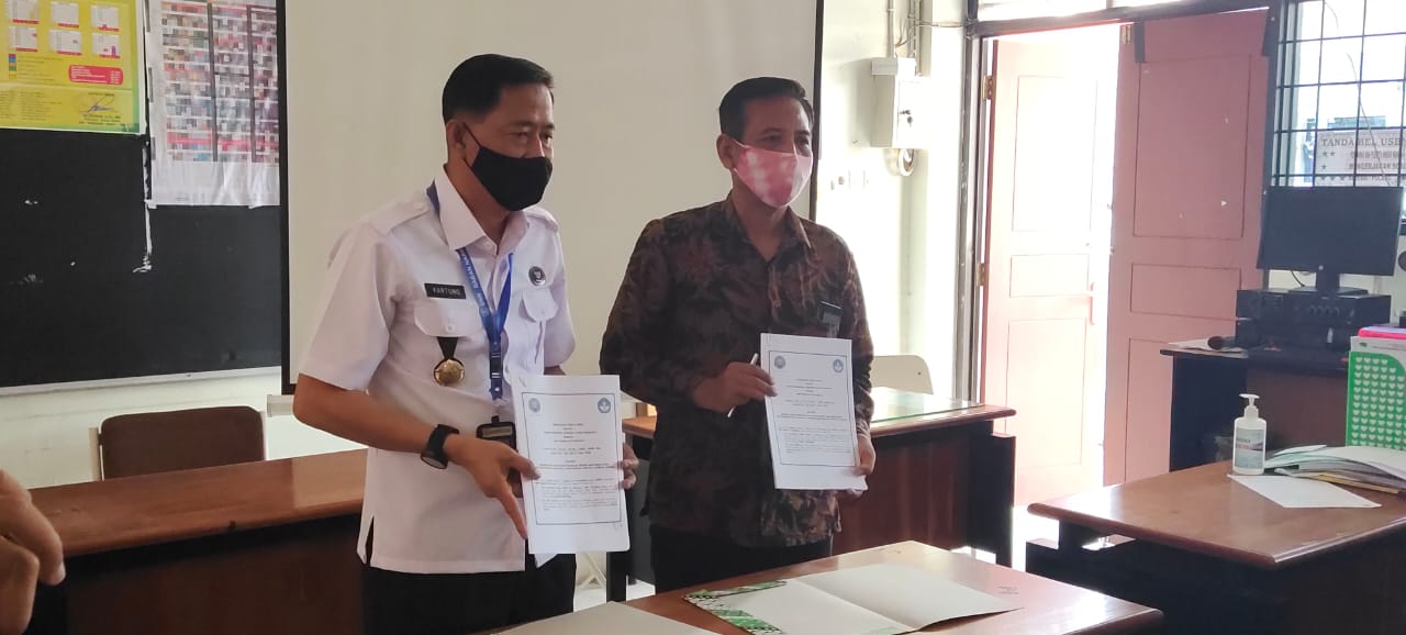 SURABAYAPAGI.COM, Surabaya - Badan Narkotika Nasional Kota atau BNNK Surabaya melaksanakan Perjanjian Kerjasama dengan SMP Negeri 50 Surabaya terkait mencegah terjadinya penyalahgunaan narkoba, Selasa (3/11/2020).