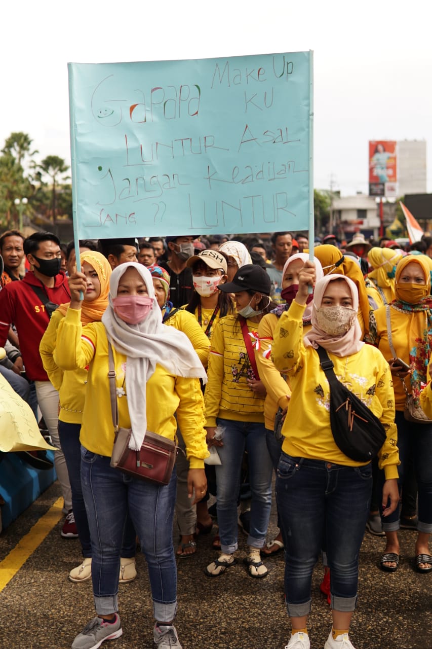 Dalam orasinya, mereka juga secara terang-terangan menolak menerima bantuan. “Kami tidak butuh bantuan, kami hanya ingin kembali bekerja. Karena sejauh ini kami hanya dijanjikan akan diberikan bantuan setiap bulan, tapi nyatanya hanya di PHP,” tegasnya.