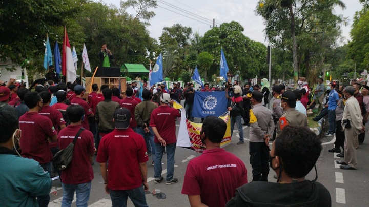 Koordinator Aksi, Luthfi Mulyono mengatakan, bahwa aksi yang kedua ini tuntutan masih sama. Yakni Pemkab Jombang mau menetapkan kenaikan UMK tahun 2021 sesuai keputusan Gubernur Jatim.
