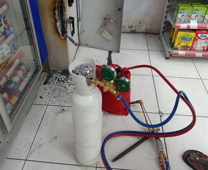 Di dalam minimarket, pelaku sudah merusak mesin ATM dengan cara di las namun belum berhasil mengeluarkan uang di dalam ATM.