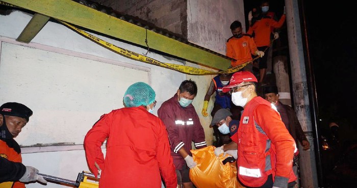Setelah dilakukan olah Tempat Kejadian Perkara (TKP) dan identifikasi, jenazah korban dibawa ke RS Pusdik Watu Kosek Kecamatan Porong, Kabupaten Pasuruan.