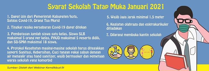 Wahid juga menegaskan bahwa sekolah harus memiliki sarana dan prasarana terkait dengan protokol kesehatan, sebab untuk melaksanakan protokol kesehatan di lingkungan sekolah dan menyedikan masker bagi siswa.