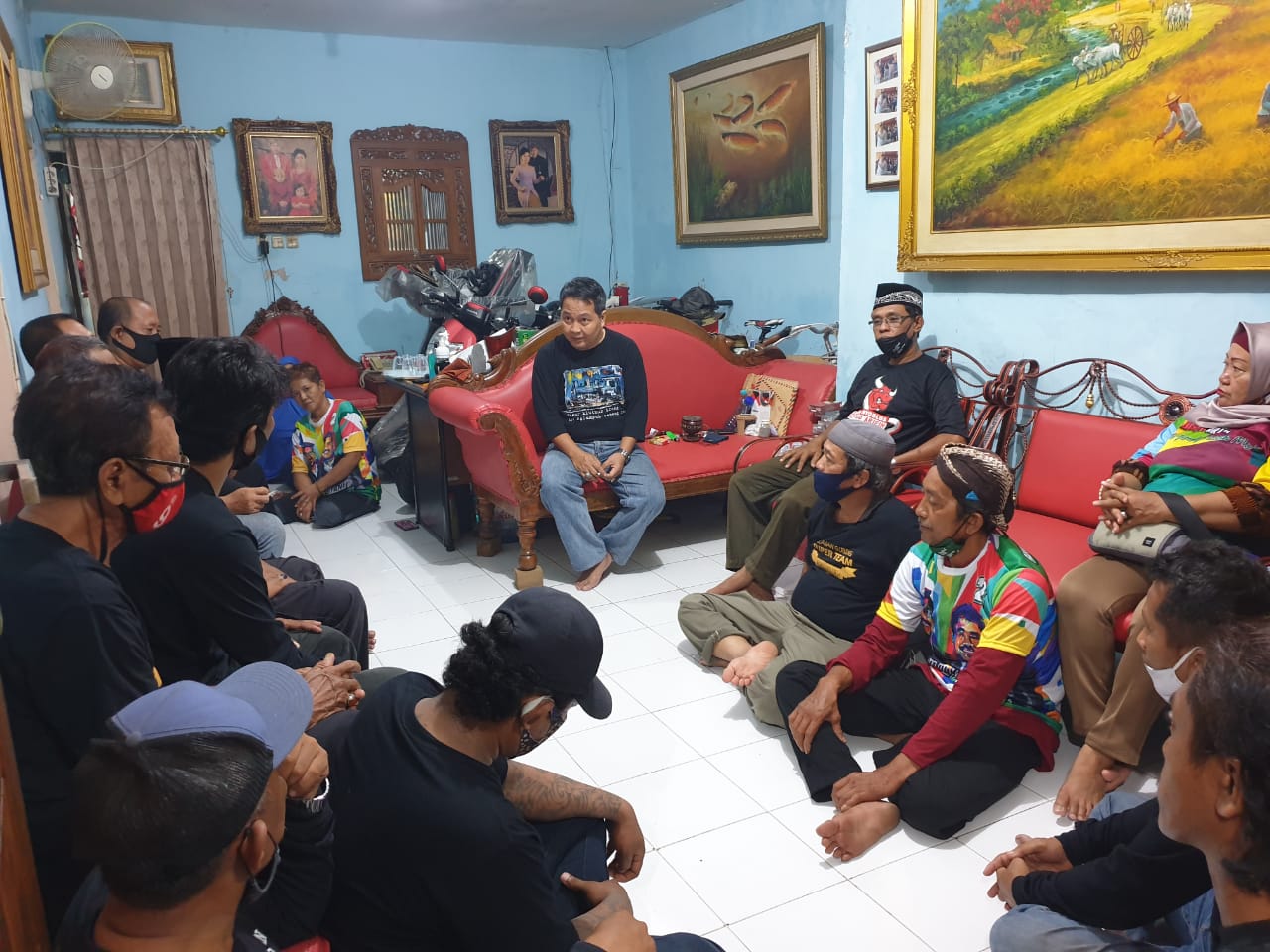 Cak Ji, tau tak tekani nang omahe. Ditabrak ambek arek-arek, yo keplayon gak wani nemoni. Gak wani memenuhi komitmen.