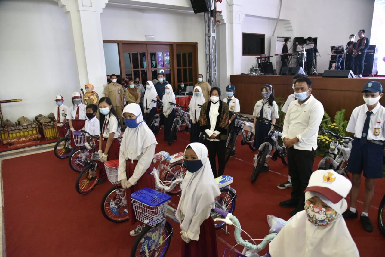 Tri Rismaharini juga memberikan penghargaan kepada 37 perusahaan/lembaga yang telah memberikan beasiswa pendidikan. Selain itu, di momen ini juga dilakukan pemberian bantuan sepeda kepada 20 siswa tidak mampu dan yatim agar bisa mereka gunakan untuk sekolah.