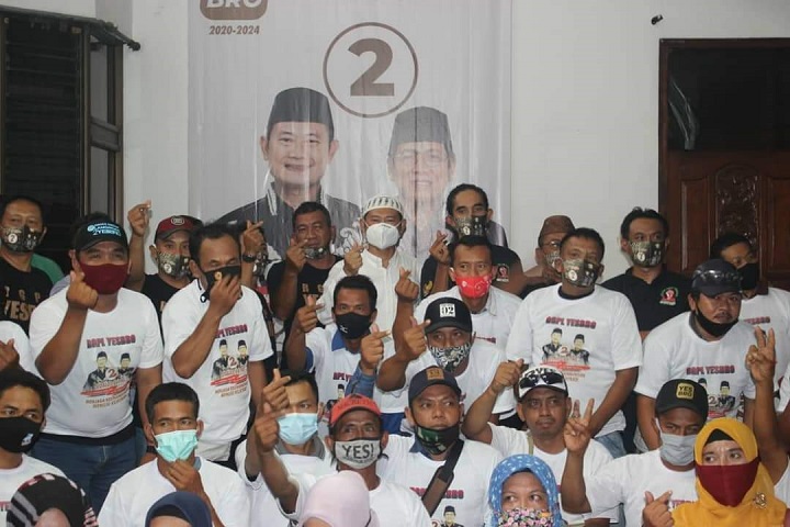 Sesekali, para pendukung Yes-Bro meneriakkan yel-yel ajakan untuk mencoblos nomor urut dua." Jangan lupa tanggal 9 Desember 2020 untuk mencoblos pasangan nomor urut 2 coblos batik e," teriak emak-emak.