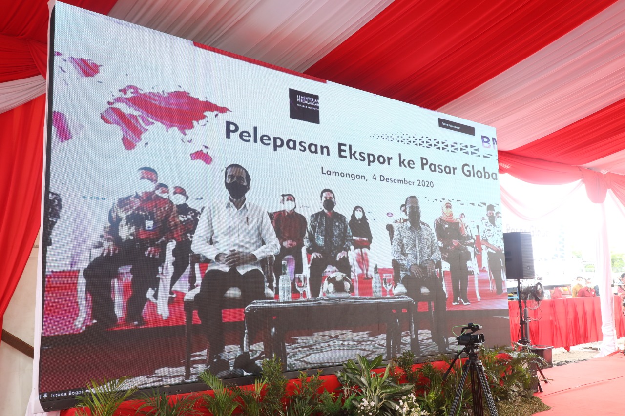 Presiden RI Joko Widodo melepas ekspor produk Indonesia yang dilakukan di Lamongan, Jawa Timur; Boyolali, Jawa Tengah; Sunter, DKI Jakarta, dan sejumlah kota lain yang tersebar dalam 16 provinsi secara virtual dari Istana Bogor.