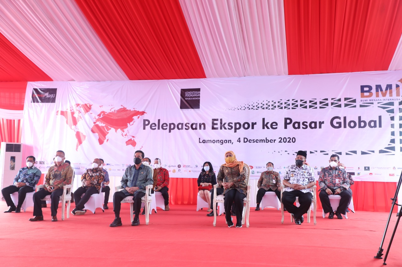 Gubernur Jawa Timur, Khofifah Indar Parawansa mengapresiasi pemilihan Lamongan, Jawa Timur sebagai pusat pelaksanaan pelepasan ekspor ke pasar global oleh Pemerintah Pusat. "Kami berharap dari 133 eksportir dari 16 provinsi ini bisa meningkatkan proses pemulihan ekonomi nasional. Serta pelepasan langsung oleh Bapak Presiden mampu memberikan dorongan motivasi untuk terus meningkatkan pertumbuhan ekonomi di daerah kami masing-masing," katanya.