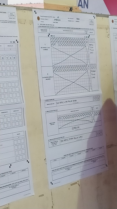 "Total DPT sebanyak 469 dengan surat suara yang dikirim plus cadangan sebanyak 481. Jumlah undangan yang hadir 265 suara," ungkap Ketua KPPS Setempat, Totok Mujianto.