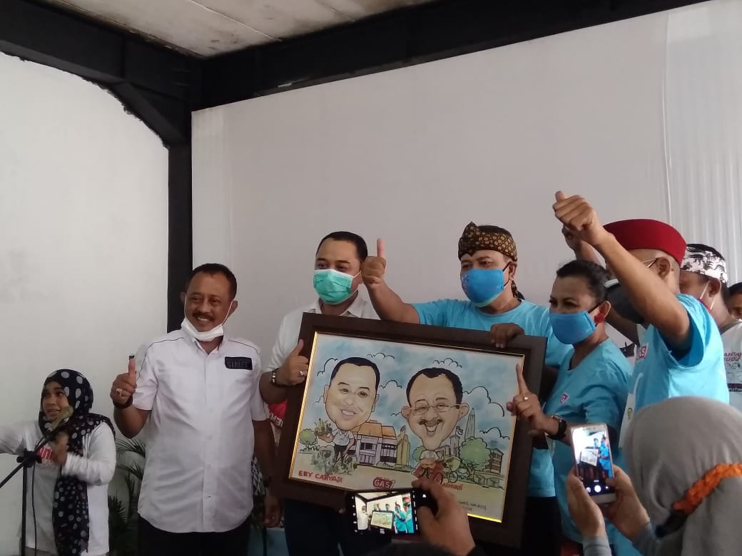 SURABAYAPAGI, Surabaya - Calon Wali Kota Surabaya, Eri Cahyadi dan Calon Wakil Wali Kota Surabaya, Armuji menghadiri tasyakuran Gerakan Alumni Surabaya Satu (GAS1) di Jalan Mawar Tegalsari Surabaya.