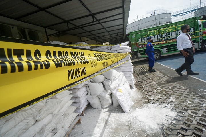 Sementara itu untuk mengelabui petugas, tersangka memalsukan surat jalan dan untuk isi dari masing-masing karung bertuliskan Sodium Carbonat. Padahal isi dari karung tersebut adalah Potasium Chlorate.