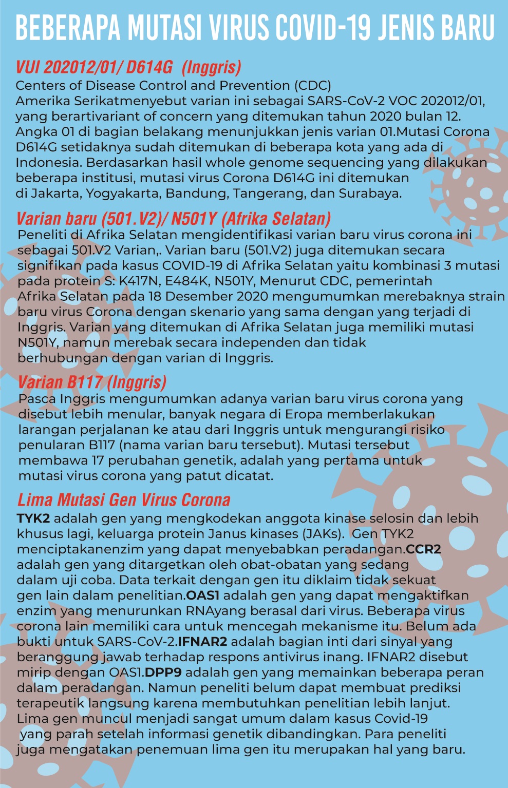 "Untuk mutasi varian baru corona dari Inggris itu memang ada, tapi kita butuh penelitian lebih lanjut lagi. Kalau soal mutasi D614G ini bahkan sudah ada di jauh jauh hari," jelas dr Jibril.
