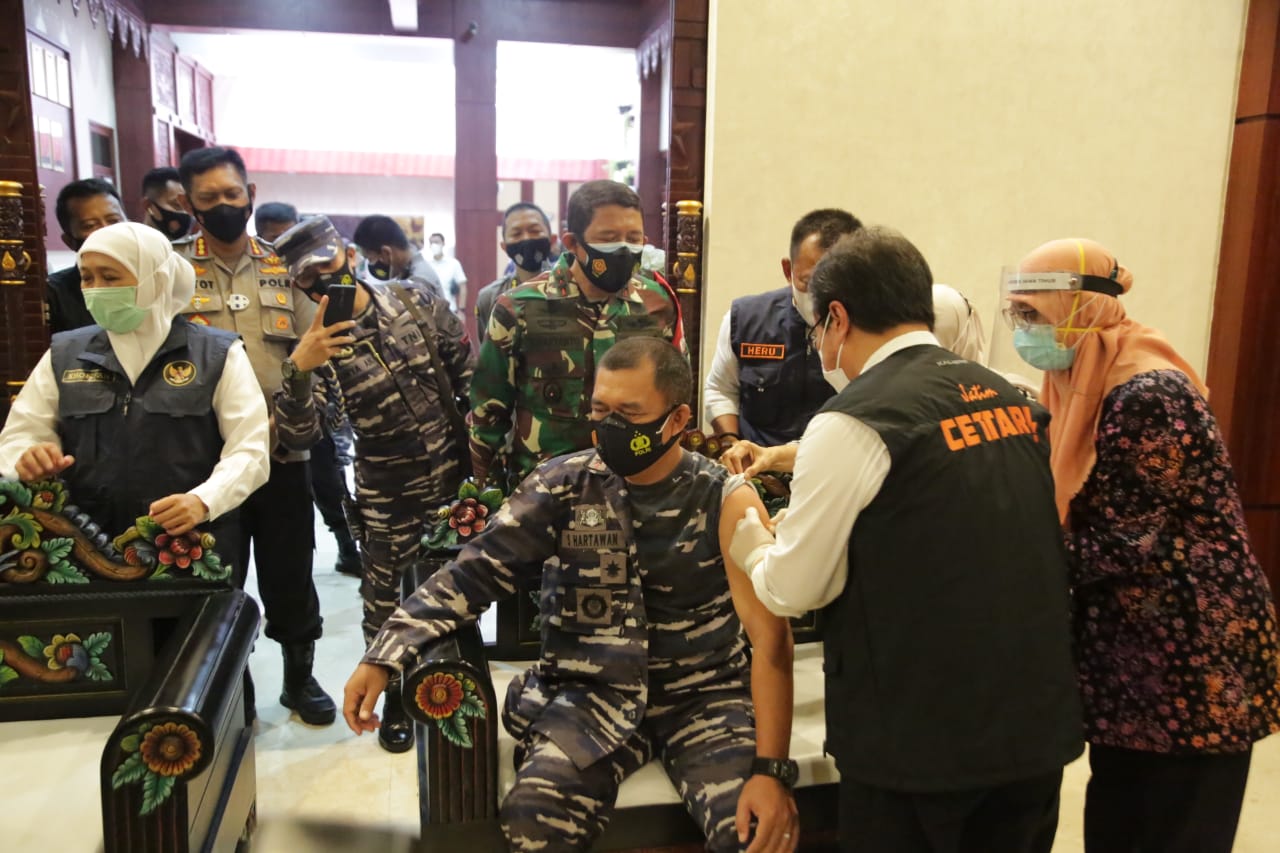 SURABAYAPAGI,Surabaya - Kapolda Jawa Timur, Irjen Pol Nico Afinta bersama Pangkoarmada II, Laksda TNI I.N.G. Sudihartawan. Melakukan vaksinasi di Makodam V Brawijaya, pada Minggu, (31/1/2021). Hal ini dilakukan dalam rangka mendukung program pemerintah, dan mengajak masyarakat agar tidak ragu dalam melakukan vaksinasi.
