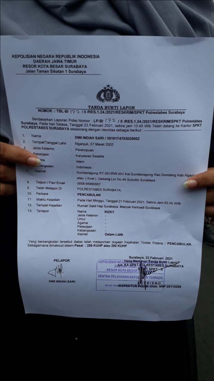 Sementara itu, Kasatreskrim Polrestabes Surabaya, AKBP Oki Ahadian membenarkan jika pihaknya sudah menerima laporan dari pelapor atau korban. "Barusan kita terima laporannya dari SPKT, nanti kita akan tindaklanjuti, pasti akan kita dalami dulu, kita kan cari apakah hal ini benar-benar terjadi," pungkasnya.