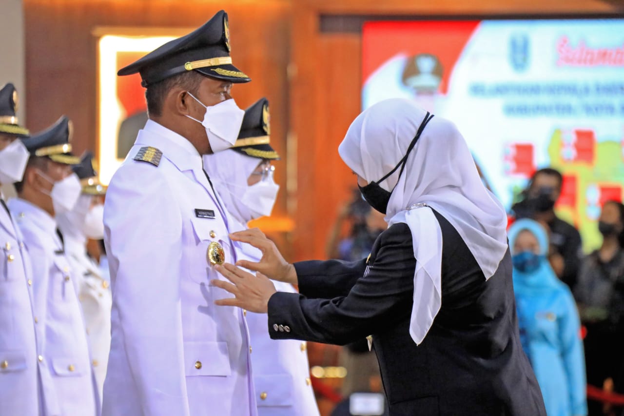 Acara berlangsung di Gedung Negara Grahadi, pelantikan akan dilakukan secara hybrid Ini penuh dengan kehati-hatian, sesuai dengan instruksi Dirjen Otonomi Daerah (Otda).