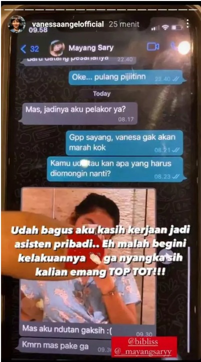 "Lihat nih, kelakuannya si pelakor. Gilaaaaa," kata Vanessa sambil membuka isi percakapan atar Bibi dengan Mayang Sary.
