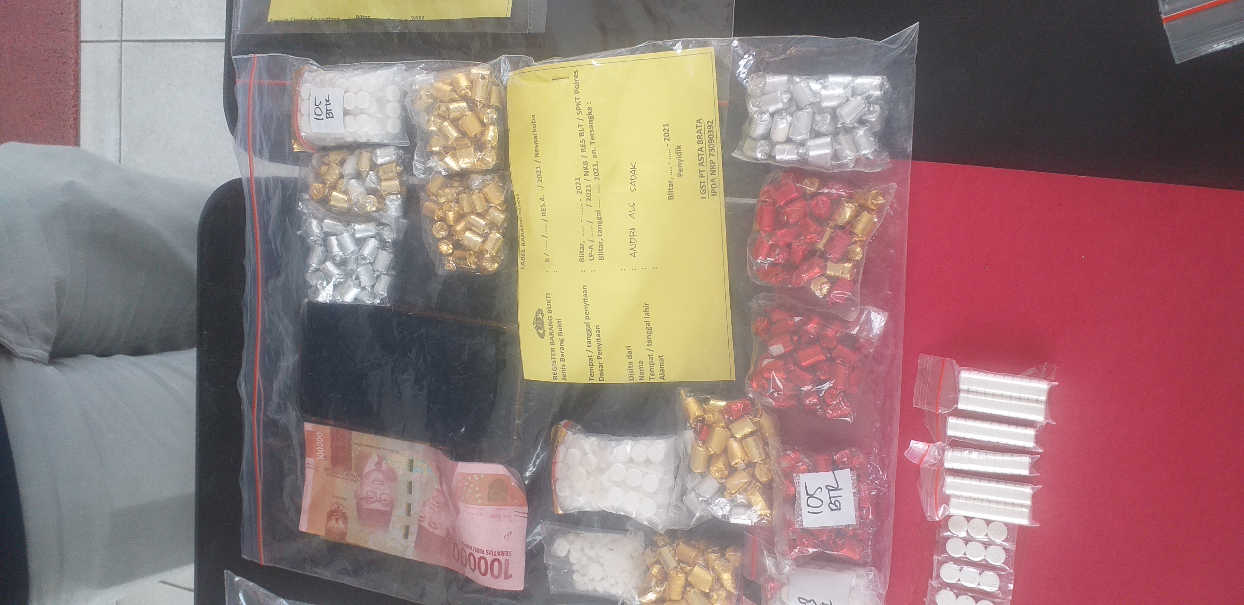 Kapolres Blitar AKBP Leonard M Sinambela SH S.IK MH dalam releasenya Selasa (16/3) siang mengungkapkan salah satu tersangka merupakan bandar pil dobel L. Dari tangan tersangka Yeni Dedianto (45) warga Kanigoro Blitar ini Satreskoba mengamankan barang bukti 375 butir pil dobel L.