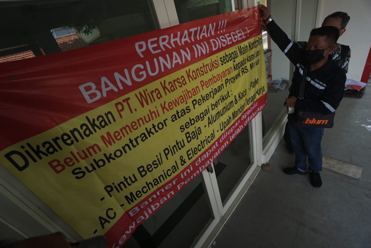 Sutono Perwakilan Pihak subkon yang dirugikan mengaku merasa terpaksa melakukan penyegelan lantaran para subkon merasa ditipu oleh PT Wira Karsa Kontsruksi selaku kontraktor proyek.