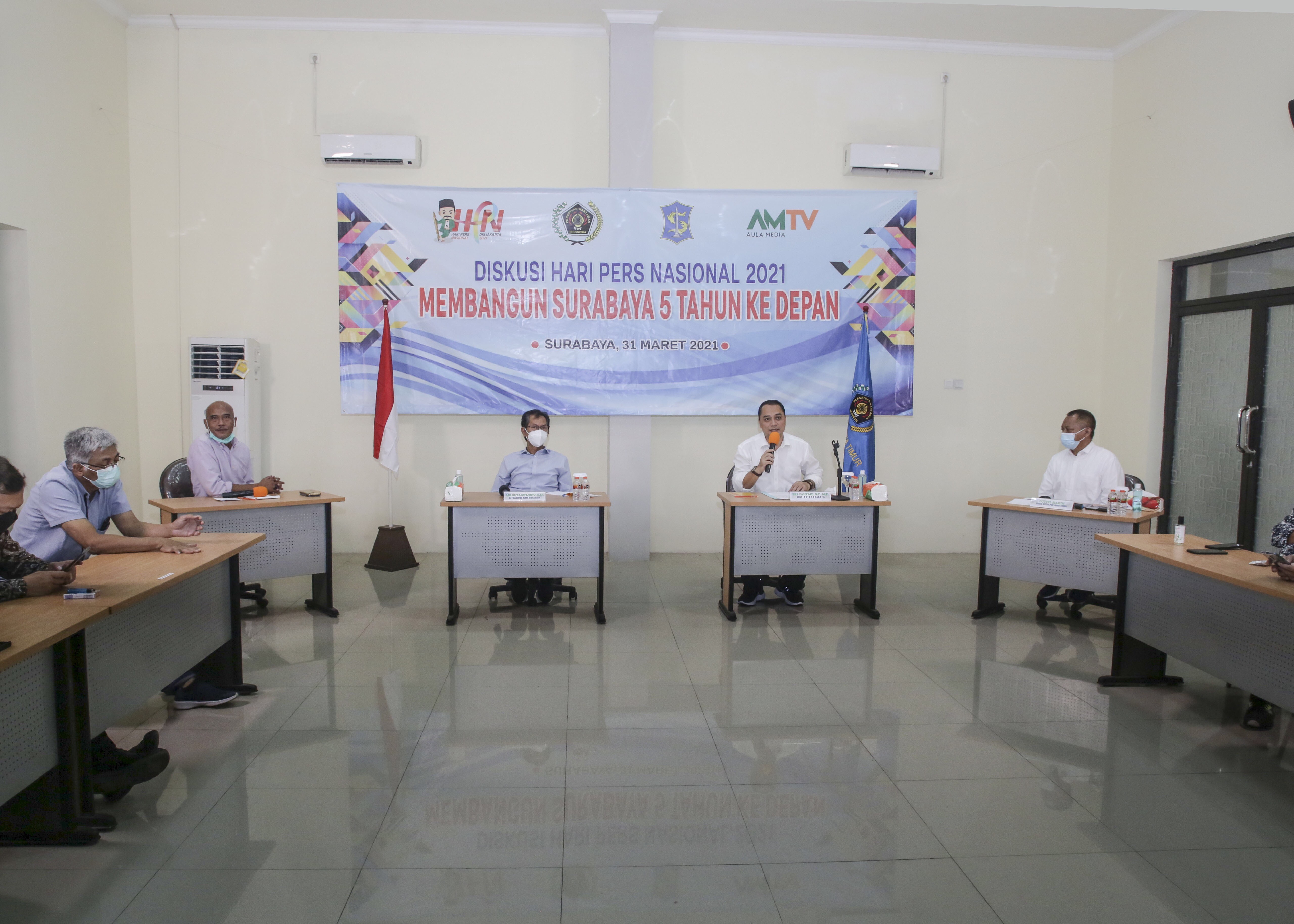 SURABAYAPAGI,Surabaya - Wali Kota Surabaya Eri Cahyadi menghadiri acara “Diskusi Hari Pers Nasional 2021, Membangun Surabaya 5 Tahun ke Depan‟yang digelar oleh PWI Jawa Timur, Rabu (31/3).
