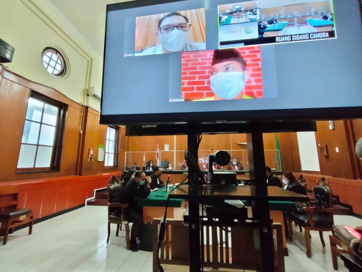 Terdakwa Christian Halim kembali dihadirkan dalam sidang yang digelar secara daring di ruang Candra Pengadilan Negeri (PN) Surabaya, Senin (19/4/2021).