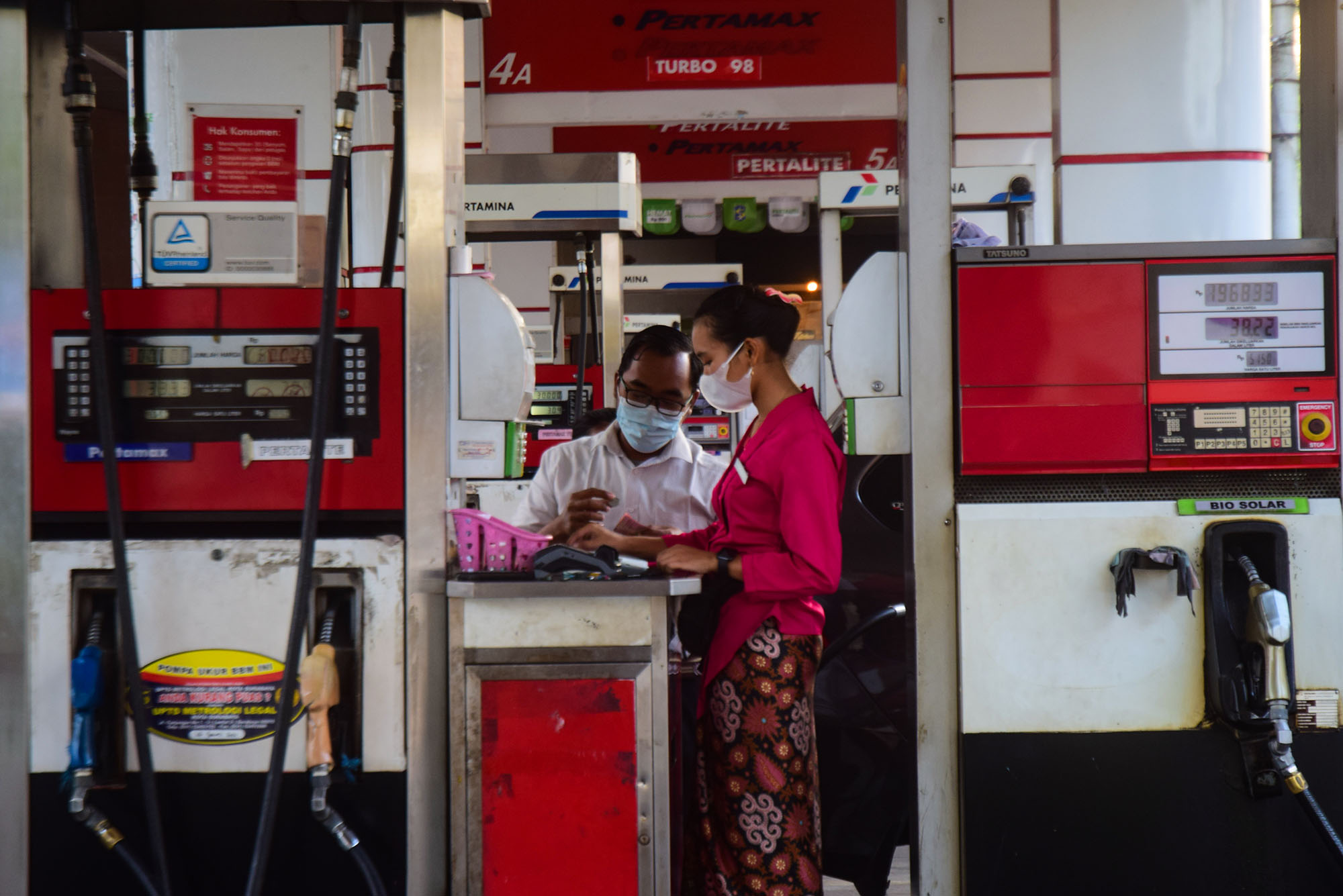 Petugas SPBU mengenakan pakaian kebaya bertepatan dengan Hari Kartini, saat pengisian bahan bakar minyak di SPBU Pertamina Kayon, Kota Surabaya, Rabu (21/4). Berkebaya saat bekerja ini dilakukan sebagai bentuk penghargaan terhadap RA Kartini yang menjadi simbol perjuangan emansipasi wanita Indonesia. Supervisor SPBU Kayon, Ratna menurutnya memakai kebaya merupakan busana nasional perempuan yang menjadi salah satu warisan budaya Indonesia yang harus dilestarikan oleh generasi muda. SP/Patrik Cahyo