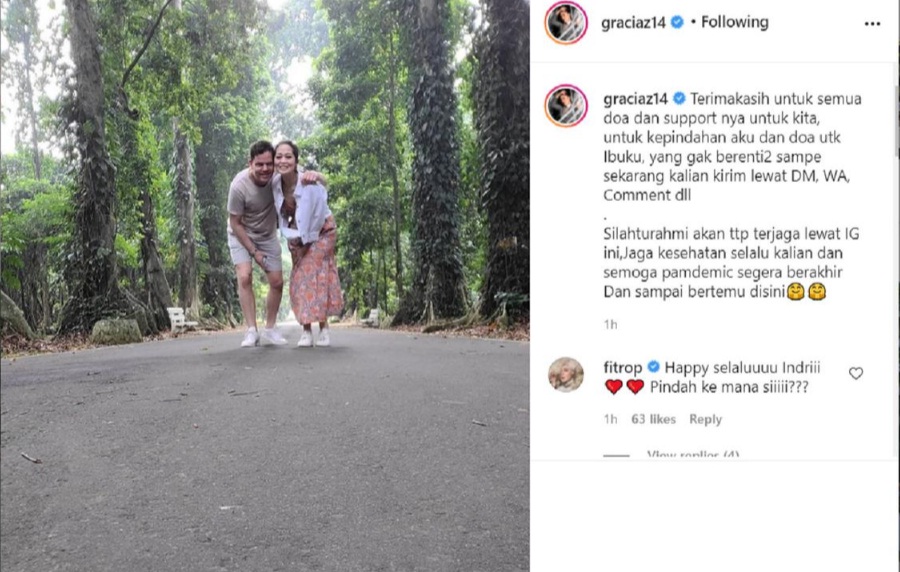 Pengumuman tersebut ia unggah di akun Instagram miliknya, Gracia Indri mengucapkan terima kasih kepada orang-orang terdekat yang memberi dukungan atas kepindahanannya ke Belanda. Ia juga berharap agar masyarakat tetap menjaga kesehatan di tengah pandemi Covid-19 saat ini.