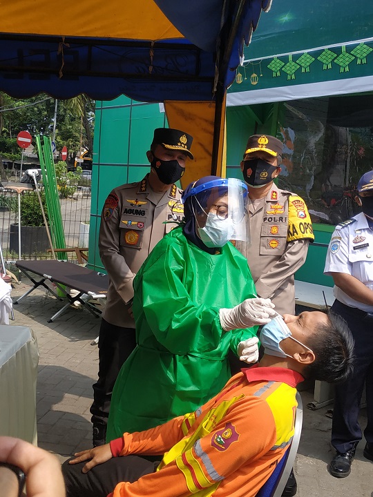 Paparan pengamanan mudik Lebaran Idul Fitri 2021 di pos pengamanan Operasi Ketupat Semeru 2021 Terminal Bungurasih, juga disertai dengan simulasi penerapan protokol kesehatan dan pelaksanaan rapid test antigen bagi penumpang bus yang datang.