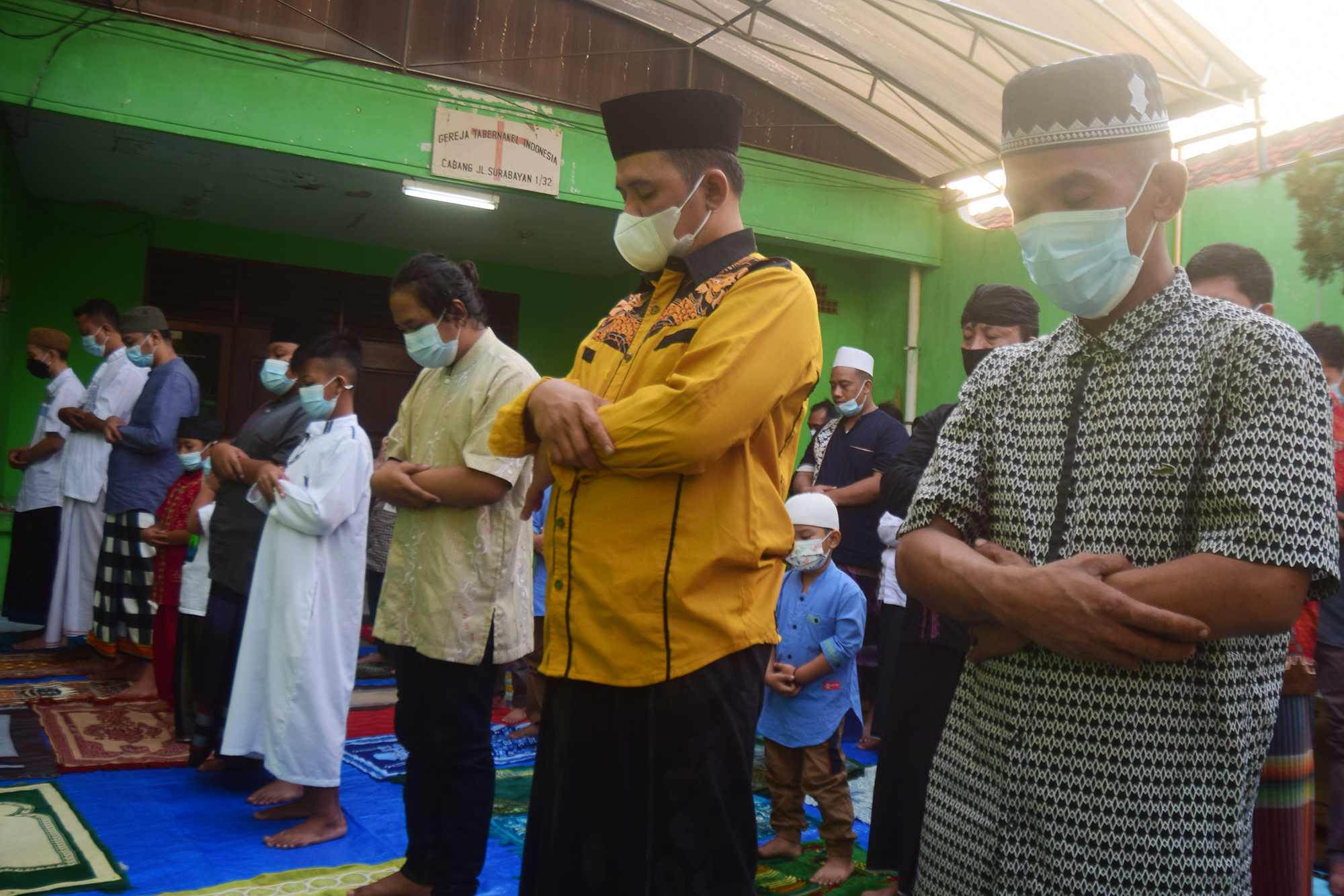 Adhar Putra Setiawan selaku sekretasris kampung mengaku pihaknya sudah berkoordinasi dengan pihak gereja setempat."Saling toleransi dengan gereja, pihak gereja juga mau membolehkan kami untuk shalat. Karena memang sedang melakukan pandemi jadi gereja melakukan ibadah secara online". SP/Patrik Cahyo