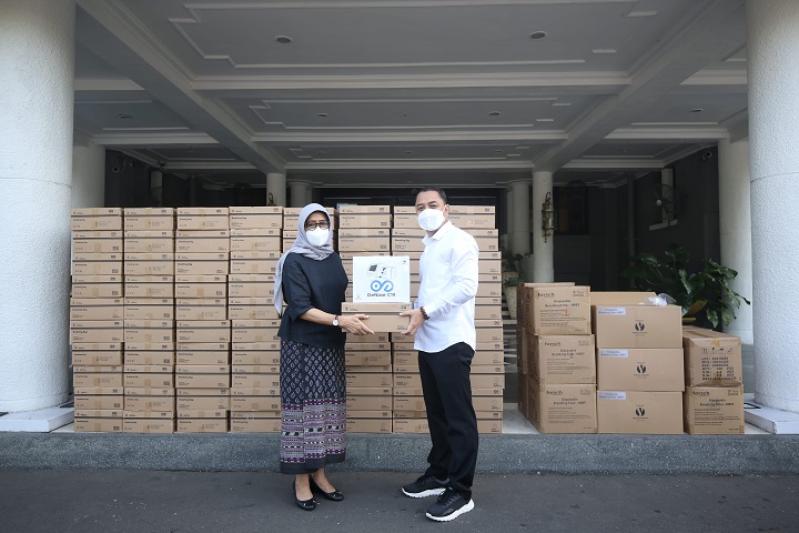 Bantuan tersebut, diterima oleh Wali kota Surabaya Eri Cahyadi di halaman balai kota, Jumat (21/5). Dalam kesempatan itu, PT Yekape menyerahkan satu unit mesin GeNose, 1500 HME filter dan 20 ribu pcs kantong nafas.