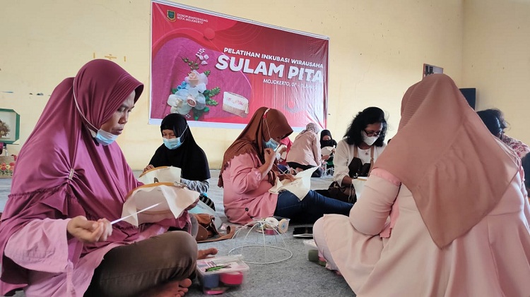 SURABAYAPAGI.com, Mojokerto - Upaya pemulihan ekonomi di Kota Mojokerto masih terus dilakukan oleh Pemerintah Kota Mojokerto. Kali ini melalui Dinas Koperasi Usaha Kecil Menengah, Perindustrian dan Perdagangan (Diskopukmperindag) dilakukan Pelatihan Inkubasi Wirausaha Sulam Pita.